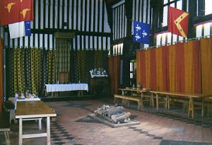 The medieval hall of Gainsborough Old Hall in Lincolnshire is still largely intact; it was built for the franklin Thomas Burgh after he was knighted in 1461, most likely dating from the 1470s. Unfortunately the walls no longer have any decoration or hangings…