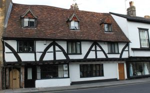 There are still quite a few of these examples in existence, although they are usually sixteenth- or early seventeenth-century, as these examples from Canterbury (above) and Stratford-upon-Avon demonstrate. The exterior color gets restored from time to time, so will usually be nineteenth-century or modern.
