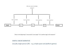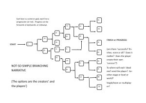 The narrative will begin in a similar way to (1), but a wrong decision, turn or ‘failure’ at a given stage may lead to reversal of a player or character’s progress. In this case, they must return to an earlier (pre-decided) stage of the game and must therefore re-take some stages. Content could also be changed at this point (the tasks may change in nature and/or content, for example, or the player may lose a skill, strength or asset). Similarly, a player or character may be allowed to by-pass a further stage, or stages of the game (for example, as a reward for some successful extra task or a higher level of ‘success’ in a task), or they may be given extra power, skills or assets for a particular ‘success’. The end goal will still have been predetermined by the game’s creator.