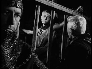 (Images of entrapment and control associated with the oppression of women: Mann places Jimene and Urraca behind slatted windows, whilst the bars of a cart form the prison for the condemned witch in Ingmar Bergman’s Seventh Seal. Constrained characters often look through windows, with the camera in front or behind).